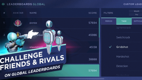 每个人都有自己偏好的配置。在 Aim Lab 移动版中,您可以选用多种武器,以便更好地提升单发点射、后坐力控制和快速开关镜的效率。从手枪、突击步枪、狙击步枪和霰弹枪中挑选出您偏好的武器进行训练。如果你希望练习某种特殊的武器,还可以自定义后坐力参数,甚至自定义整件武器,从而将您的训练提升到更高的水平。
