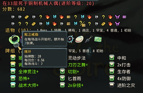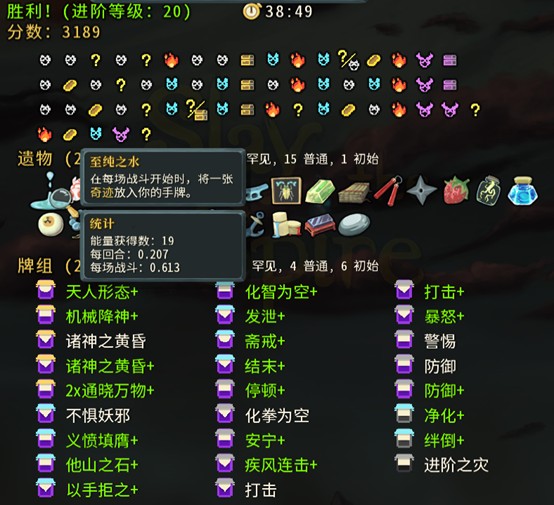 所以,就算是打了精英怪也不一定能有好的遗物,你的实力还是通过组牌和选到加费用的遗物提升的。