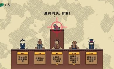 1.庭审流程分为五阶段,首轮模拟审判,你可花费金钱购买证人。初始资金三块钱,目标是获得无罪选票。其中,双胞胎和贵族都有能力投无罪票
