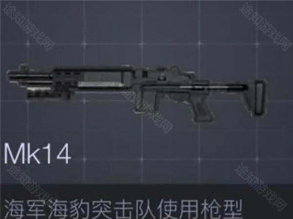 Mk14 EBR使用7.62mm子弹,是游戏中最新的一把狙击步枪,优点:在搭配托腮、握把之后射击精度会非常惊人;缺点:仅产自于空投。