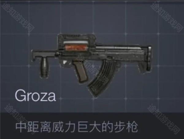 Groza使用7.62mm子弹,是游戏中一款罕见自动步枪,优点:威力大且射速快;缺点:只产出于空投,因而登场率较低。