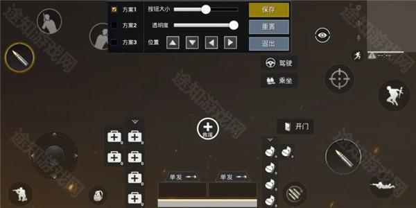 3.界面的左边中间位置和右下方位置的“子弹”图标是开枪键。最右边位置的“瞄准”图标是开镜键,画面中心的准心瞄准敌人就可以点击开枪键了。
