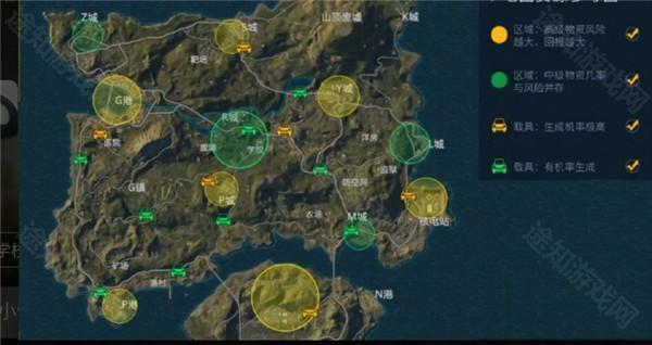 Y城位于地图右上方区域,资源丰厚,拥有大量枪支、配件、防具等稀缺物资都能搜索到。周边刷车点不多,但有固定车库,刷车的几率高。物资非常丰厚,但房屋较多,收集物资比较耗费精力,同时Y城地形复杂,很容易被偷袭,这里建议最好双排和四排来这里,商量好战术,成为Y城霸主。