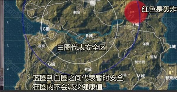8.游戏中会随机调整军演临时安全区域,安全区就是地图中白色圈内的区域,如果在指定时间内没有到达安全区,就会持续扣血直至死亡,所以我们需要跑圈!建议一刷新安全区就赶紧进圈哦,避免发生枪战后忘记跑圈!
