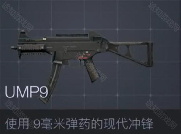 UMP9使用9mm子弹,是游戏中常见的一款全能型冲锋枪,优点:威力大,稳定好,距离远,弹夹容量大;缺点:远距离较乏力。