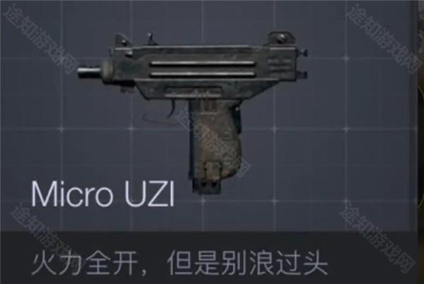 MICRO UZI(俗称乌兹)使用9mm子弹,是游戏中常见的一款冲锋枪,优点:射速极高;缺点:威力较小、射程较短而且不能装配瞄镜。