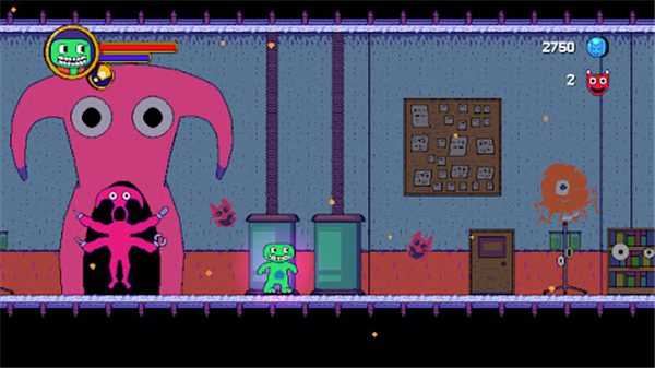 3、不断前进来发射子弹消灭一切阻挡的敌人,当你触碰到陷阱或者敌人是会损失血量。