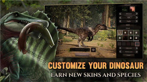 选择你的恐龙种类,适应这种弱肉强食的大自然生活,学会利用自己的身体,在丛林中纵横、