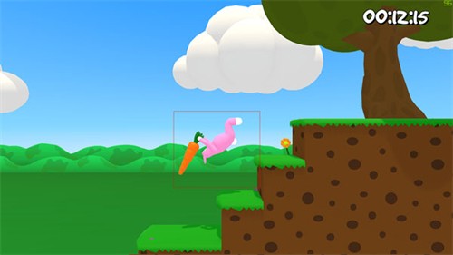 6、然后让自己的图纸滚到目标位置,然后按跳跃键,这就是抓取键,只要玩家的兔子抓的是萝卜的根部或尾部,你就能把这个萝卜抓起来,然后一直按住就能把萝卜抓在手里,然后随意翻滚都没有任何问题。