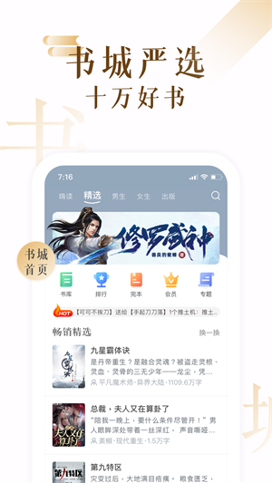 1、书店拥有大量的藏书,包括网络小说和出版书籍,您可以搜索热门小说。