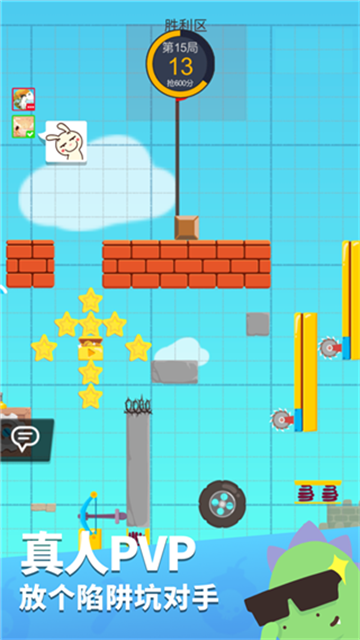 - 在单人赛中,根据段位不同,门票价格也会有所不同。匹配成功后,玩家需要在规定时间内放置组件铺路或设置陷阱,然后控制宠物走向终点。如果玩家想放弃比赛,可以点击死亡图标,但仍可观看其他玩家的比赛。