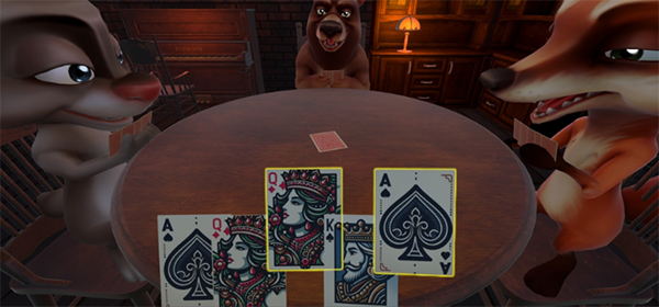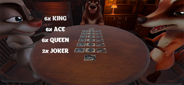 点击PLAY进入游戏,你将扮演一位角色(可能是猪头),在酒馆和三个哥们玩牌(目前暂时不支持联机),规则很简单,类似某国杀的于吉和东北的唬牌。你的目标是成为最后的赢家,活下来!