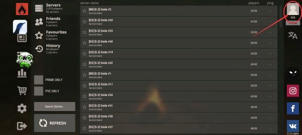 1、打开腐蚀rust手游中文免费版,游戏需加速器启动,选择一个房间;