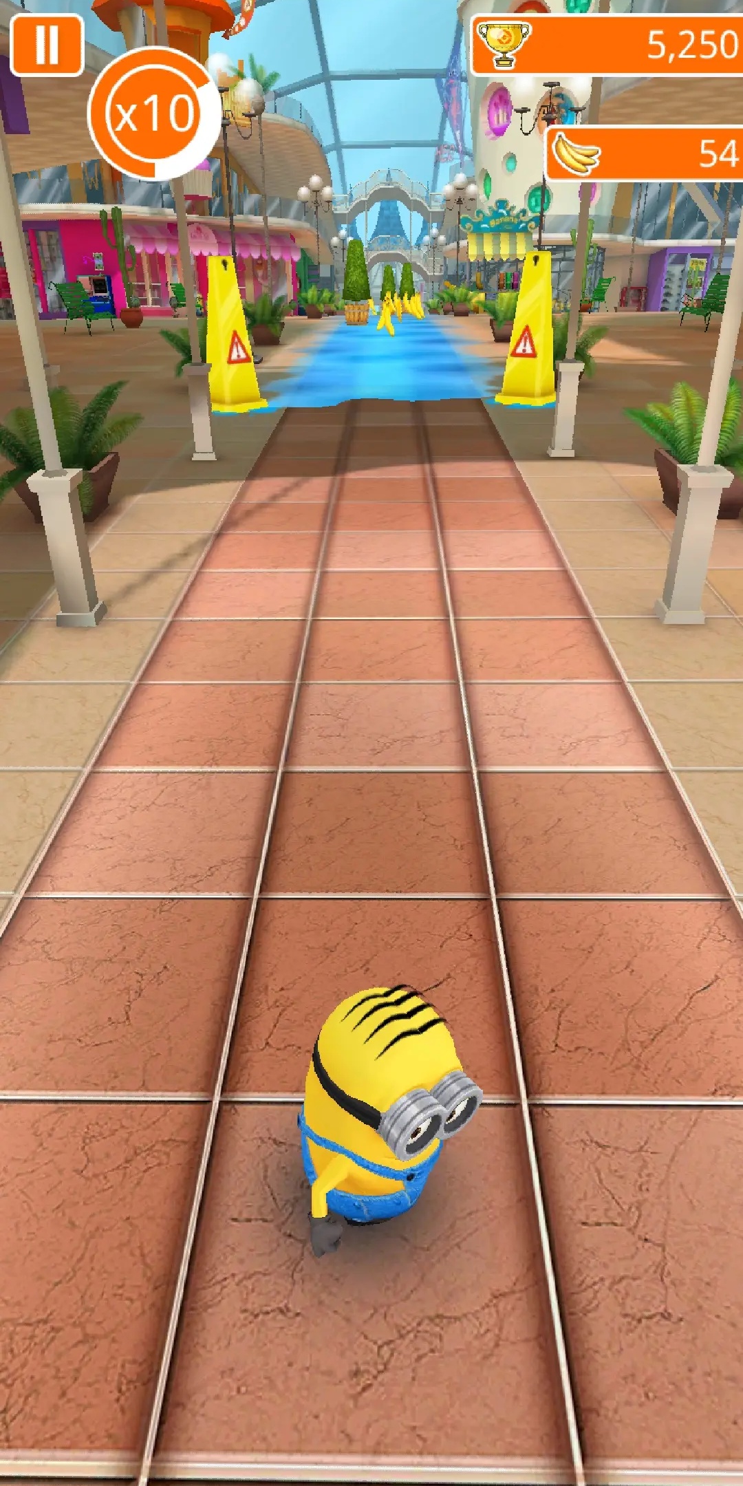 5、用手指向右滑动屏幕,使小黄人避开前方的障碍物。