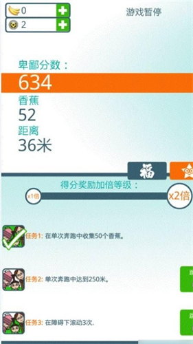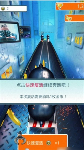10、如果不小心撞到了障碍物,可以选择花费一个金币快速复活,继续挑战。