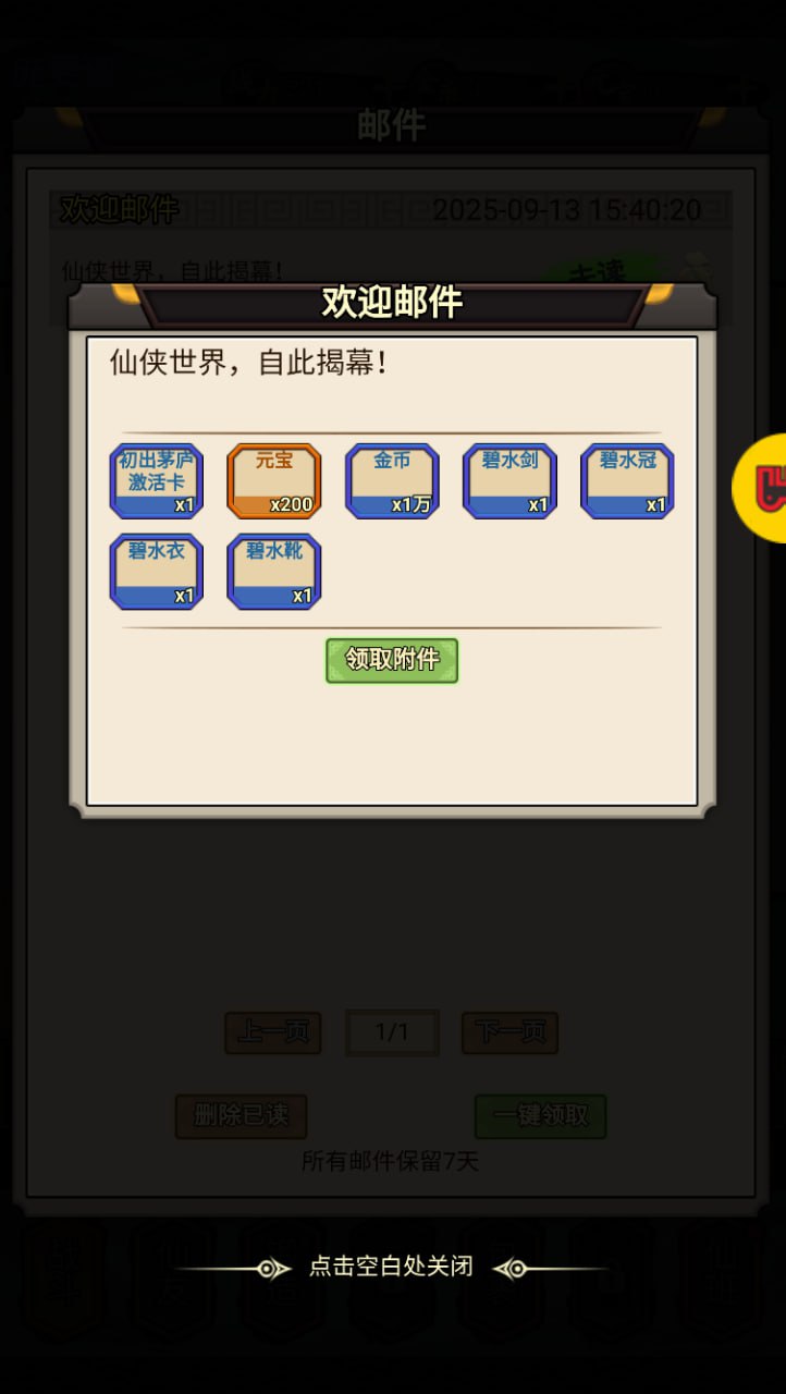 2、进入游戏中可以先点击邮箱领取登入豪礼。