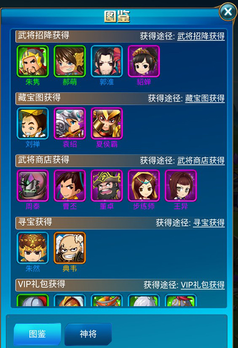 2、玩家可以通过武将图鉴查看武将的获取方式极其属性特性。