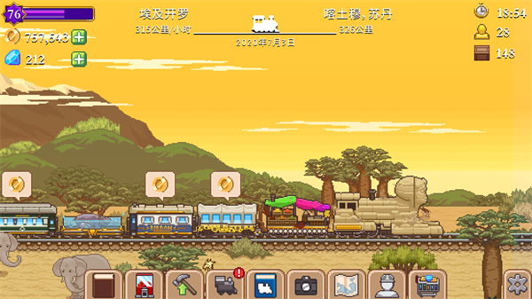 每当到达一个车站时,都会出现商场页面,这时候就可以买东西了,当一样物品有红色的标记,就说明那样物品下在下个地方可以卖出更高的价格,也是就价格差,用价格差可以获取不错的利润,钻石不要随便花,用来买[R级的火车,时刻跟着地图上的!前进就可以了。