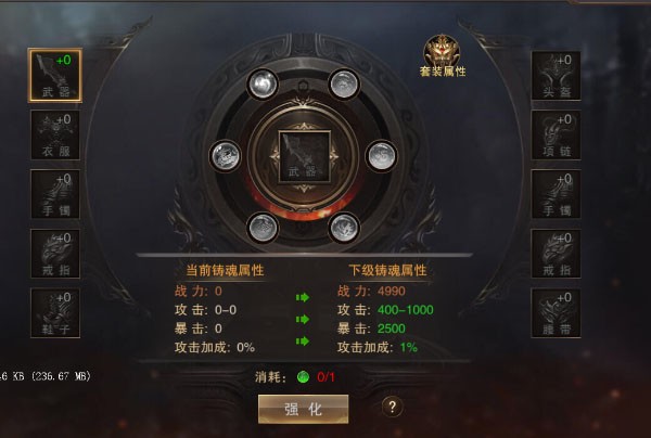 ①消耗青龙魔魂,进行装备铸魂,获得额外装备属性