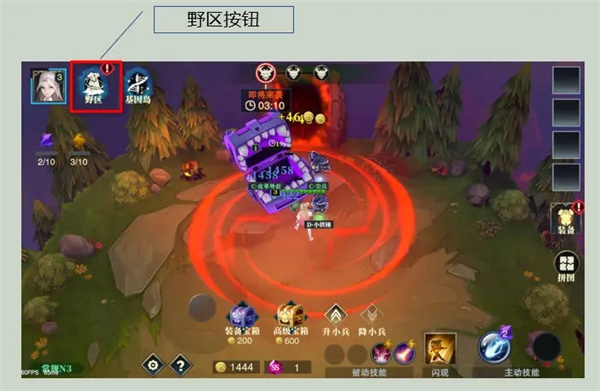 除了在固定场景打小兵,也可以去野区打野补充发育。野区出现野怪时会出现提示。点击野区按钮就可以瞬移到野区。