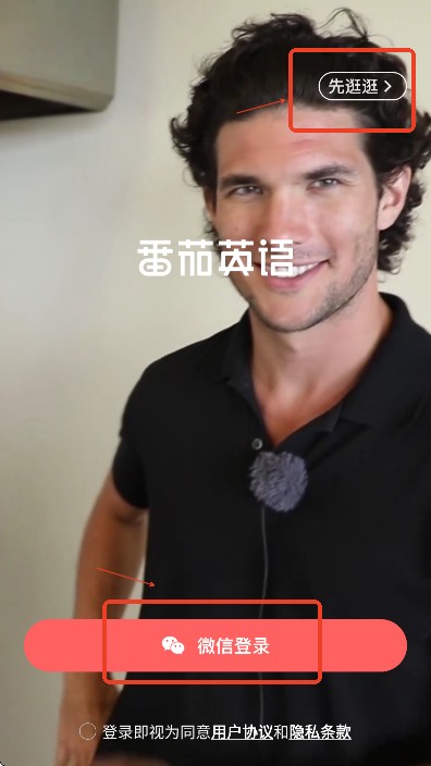 进入app,可以点击下方进行微信登录,也可以点击右上方“先逛逛”