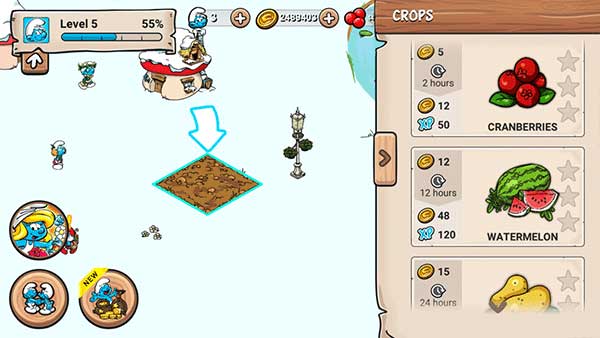 1、如果你想要加快你的农作物和村庄的增长,可以购买蓝精灵浆果;
