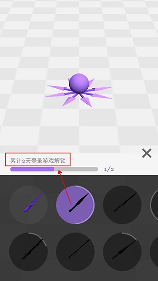 玩家在主页点击右下角的斧头图标即可进入飞刀皮肤页面,完成任务即可解锁飞刀图标。