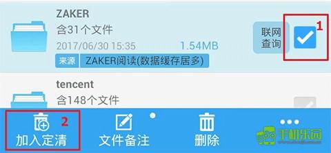 在“存储文件分析”页面,勾选要定期清理的文件(夹),然后点击“加入定清”即可。
