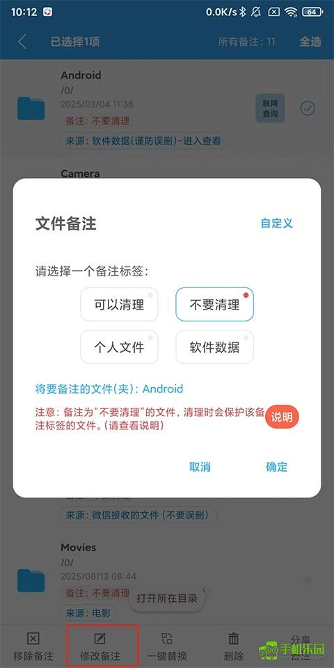 所以,在深度清理前,首先要把重要的文件备注为“不要清理”,来防止误删。软件初始默认备注了DCIM(照片)、Android(软件数据)这两个目录,就是为了防止误删。