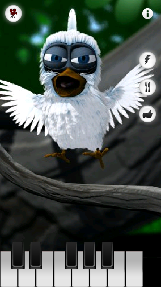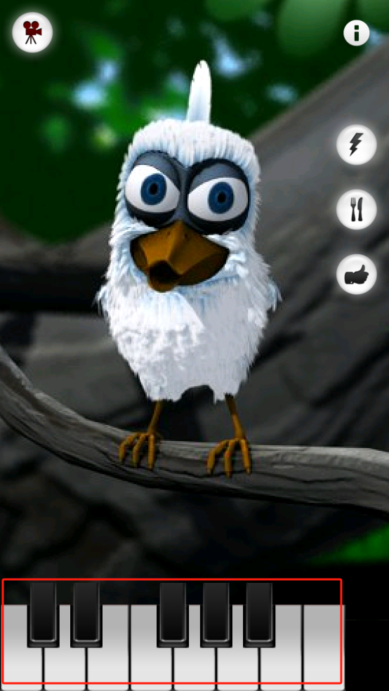 小家伙可以重复你说的话,相信已经被大家玩烂了,没有什么新鲜感了吧。不过如果告诉你,它会吹口哨给你听,是不是有点小兴奋呢?如果说它可以按照你的编曲来进行演唱呢?不要太激动了呦。你可以通过屏幕下方的虚拟钢琴按键,随心弹奏喜欢的曲调,拉里鸟就会撅着嘴用口哨演绎出来。不过音乐好不好听,就全看你的音乐才能喽。