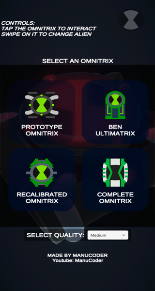 少年骇客手表模拟器最新版是一款根据动漫改编创作的英雄变身模拟器类手游,英文名也叫Omnitrix Simulator,在游戏中,玩家通过该模拟器可以变身成为《少年骇客》里的强大英雄,如电蜥、积木猩、重力蟹霸、炸蚱蜢、胖胖鱼等,让你在游戏中可以体验动画里的乐趣。同时游戏内手表种类多样,玩家可以根据自己的喜好自由选择,并且每款手表都完美复刻了动画片里面的模型,各别样式的手表还提供虚拟投影的功能,让你真真切切的体会到变身的快乐。喜欢的朋友不妨下载试试看,相信一定不会让你失望的。