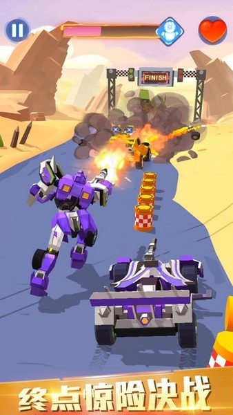3.在游戏之中玩家可以通过使用变身的方式,变身成为变形金刚帮助自己去进行赛道的冲刺玩法。