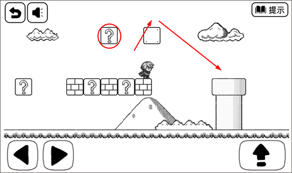 1、先跳到图中打圈的位置,顶出方块,站在上面跳到水管那里。