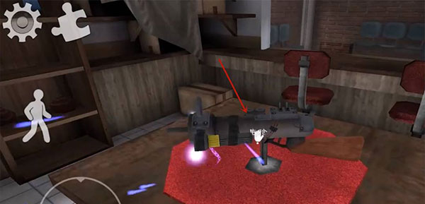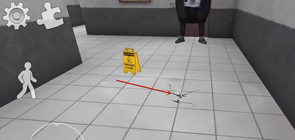 25、回到刚才放下木条的地方,用灭火器喷屋顶上的洞,屋顶就会塌掉。