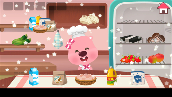 5、根据给出的提示将所有的美食制作材料进行放置,然后跟随提示进行美食制作。