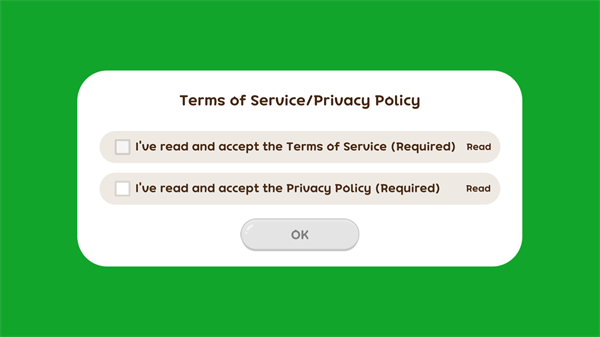 1、进入游戏后会给出相应的游戏条款,对两个条款全部打钩,然后点击OK进入游戏;