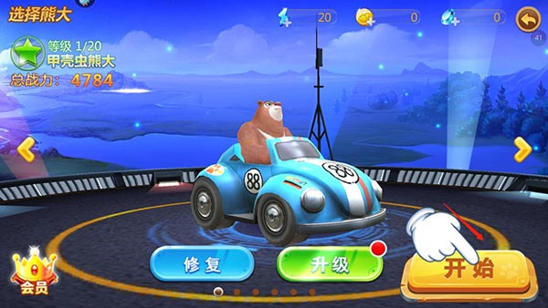 3、接着再选择熊二的机甲,点击开始;