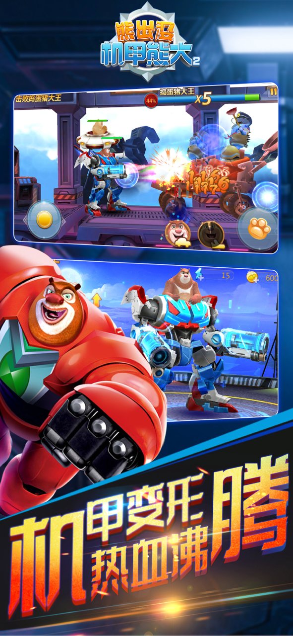 熊出没机甲熊大2震撼登场!它延续经典,以熊大为原型打造酷炫机甲造型,外观极具科技感与未来感。在玩法上更加丰富多样,玩家能操控机甲熊大体验刺激战斗,释放强力技能击败对手。其还拥有流畅的操作手感,让玩家轻松上手。丰富的场景关卡,带来沉浸式冒险体验。无论是熊出没粉丝,还是喜爱机甲战斗游戏的玩家,机甲熊大2都不容错过,快来开启热血战斗之旅!