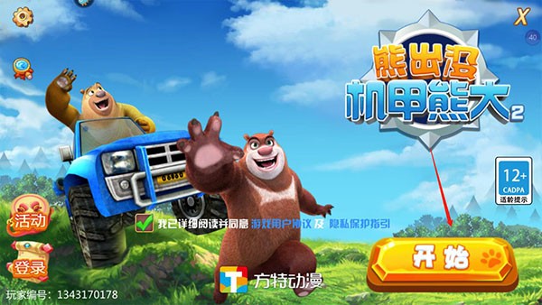 1、下载打开熊出没机甲熊大2游戏,勾选同意协议点击开始;