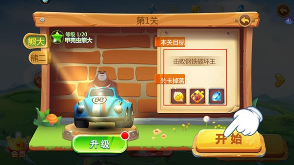 2、选择熊大的机甲,点击开始;