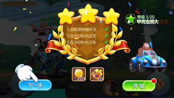 9、成功击败钢铁破坏王即可通关成功,领取奖励开启下一关吧!