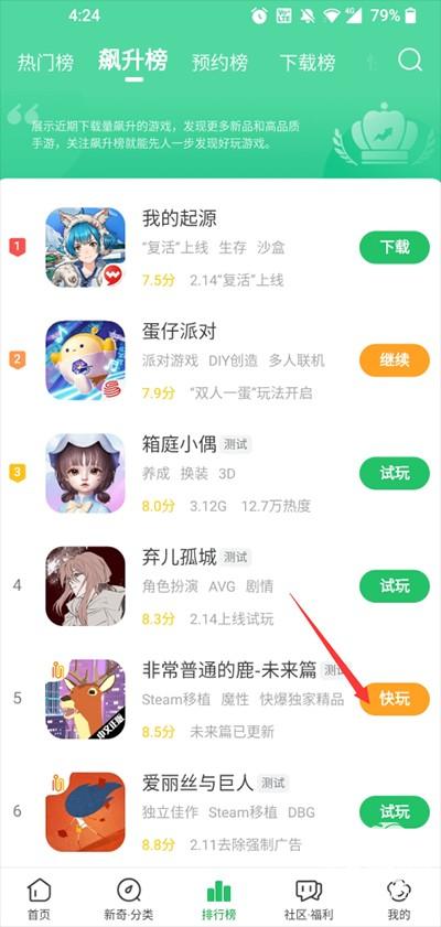 1、找到想要玩的游戏,点击右边的“快玩”按钮。