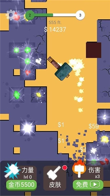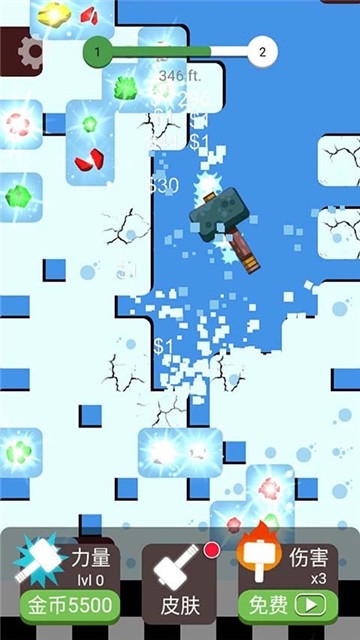 2.握住手中的锤子,一个接一个地炸开敌人,成为最强大的。