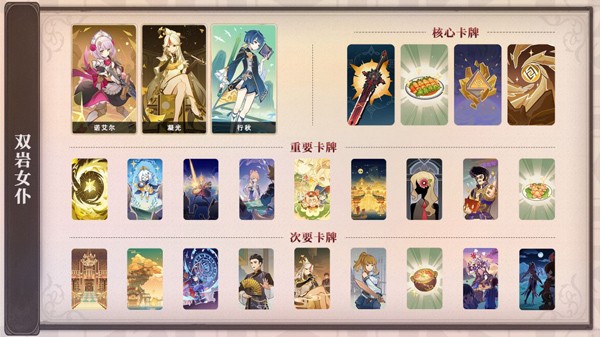 (1)十分标准的单核发育队,也是最适合玩单核发育的队伍双岩提供的护盾卡可以很好的保障诺艾尔的输出环境