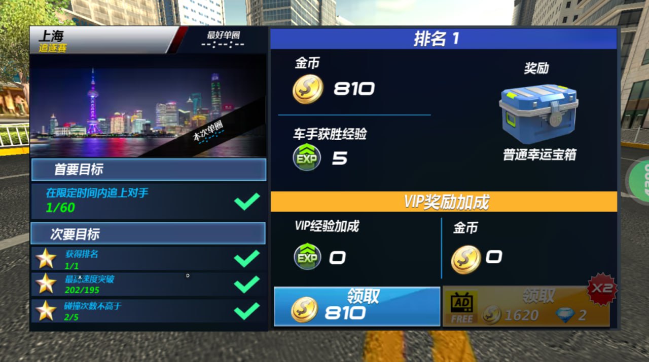 3、在赛道关卡中获得三星评分可以获得金币经验等奖励。