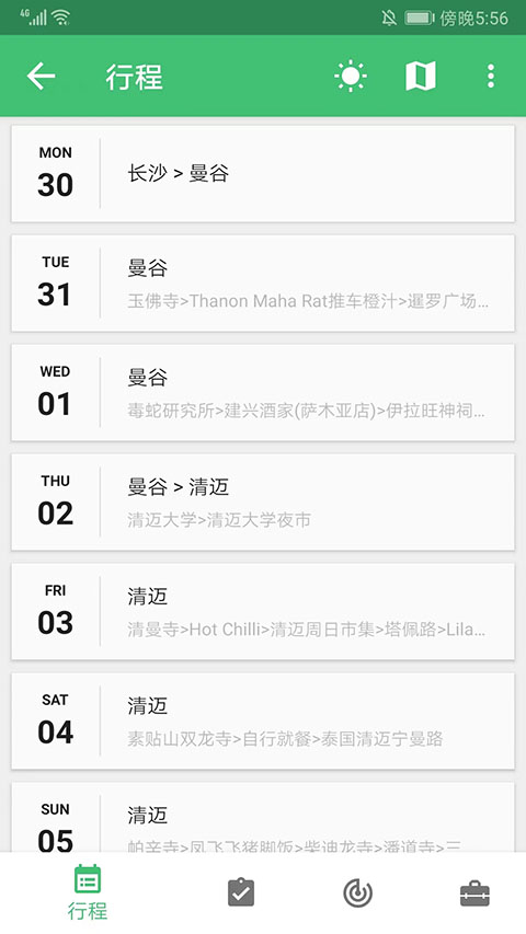 7、可看到详细的行程日期和地点,行程制定完成。