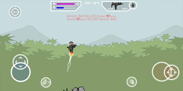 1、游戏中采用了非常经典的双摇杆操作模式非常精彩,玩家需要左右手移动进行瞄准;
