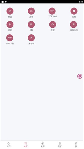 1、在手机上打开画师联盟app,进入首页后点击底部中间的【发布】