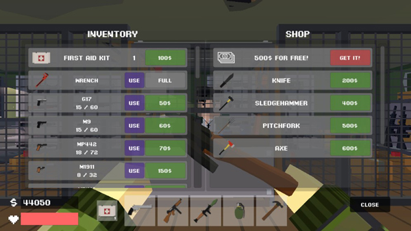 新手我建议到第一关去打两次。拿到1000块之后去第二关。上沙发攒钱,先做消防斧,然后再做图中这把枪。如果解锁第四关的时候给了钱却不开门,退出去重新上,再买就行了。顺便补上一条,到了后面的关节,尤其是第四关,千万别做死下来。