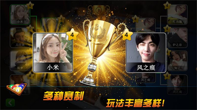 1. 支持实时双人匹配,也可参与多人联赛,与全球玩家切磋台球技艺,或者在单机模式下放松练习。